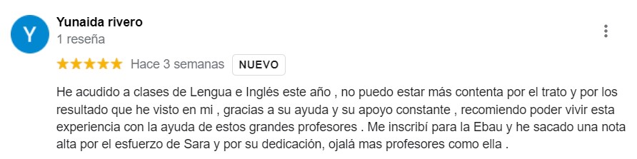 Andrea está matriculada en inglés. Ha progresado bastante desde que empezó con nosotros. Ha mejorado sus notas y ha conseguido su objetivo. Lo importante es aprender, avanzar y notar el cambio. ¡Gracias Andrea, por confiar en nosotros! Seguimos aprendiendo juntos.