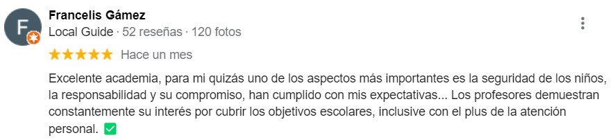 Valoraciones y opiniones sobre la experiencia de nuestros alumnos en Ana Margarita Academy.